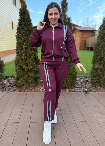 Костюм двійка: Кофта на блискавці з кільцем, низ та рукава на широкій гумці, спереду кишеня. Штани з високою посадкою, на широкій резинці , з боків кишені , низ штанів рівний. Костюм прикрашений лампасами.