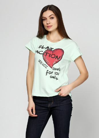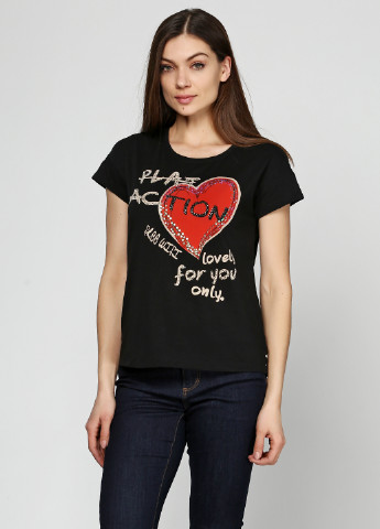 Стильна футболка прямого крою. Декорована принтом та брошкою з бантом. Цієї речі знайдеться гідне місце у вашому гардеробі, адже, набуваючи такої футболка, можна з легкістю моделювати привабливі та оригінальні образи кежуал, а також луки у вуличному, міському, спортивному стилі тощо. Виріб порадує тих, хто воліє виглядати стильно та ефектно.