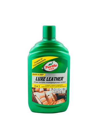 Очищувач-кондиціонер для шкіри Turtle Wax Leather Cleaner Conditioner – препарат, що поєднує в собі ряд властивостей, необхідних для догляду за шкіряною оббивкою салону автомобіля. Як очищувач кожіавтомобіля, видаляє забруднення з усіх типів шкіряної оббивки салону, включаючи шкіряний верх кабріолета. Як кондиціонер для шкіри автомобіля, склад насичений гліцерином, зволожує і відновлює еластичність шкіри, а технологія фільтрів SUN-STOP перешкоджає негативному впливу на неї ультрафіолету і запобігає розтріскування і передчасне старіння шкіри.