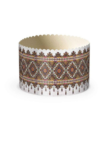 Паперові форми для випікання паски виготовлені з високоякісного харчового термостійкого пергаменту, який дозволений для контакту з харчовими продуктами. Досить зручні у використанні і мають ряд переваг над звичайними металічними формами, оскільки не потребують змащування перед випічкою, запобігають забрудненню та черствінню виробу, не потребують виймання з форми після випікання, надають привабливий зовнішній вигляд виробу. Орнамент паперової форми відтворює орнамент стрічки Писанка що дозволяє підібрати досить вдалий гармонійний комплект для пасхального кошика. Приблизна вага готового виробу після випікання в даній формі 500г.