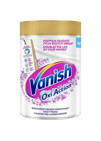 Reckitt Benckiser — міжнародна компанія, лідер у виробництві товарів для здоров'я й особистої гігієни. Завдяки своїй інноваційності, компанія посідає перші місця в більшості категорій, що швидко зростають, у яких представлена. У портфоліо компанії зараз — 19 глобальних брендів, як-от Nurofen, Strepsils, Gaviscon, Mucinex, Durex, Scholl, Lysol, Dettol, Clearasil, Veet, Harpic, Bang, Mortein, Finish, Vanish, Woolite, Calgon, Airwick і French's. Порошковий плямовивідник і відбілювач Vanish Gold Oxi Action Кришталева білизна видаляє плями за 30 секунд і робить ваші речі на 3 тони білішими. Додавайте Vanish під час кожного прання. Завжди дотримуйтесь інструкції з прання, зазначеної на ярлику одягу. Не використовувати на кольорових речах. Зберігати в закритому прохолодному місці. Не використовувати для вовни, шовку та шкіри. Уникайте потрапляння на металеві ґудзики та пряжки. Спосіб застосування: Видаляти плями з одягу та інших тканин за допомогою Vanish Oxi Action набагато легше, ніж ви думаєте — додавайте одну ложку Vanish під час кожного прання! Прання: Для складних плям і плям, що в'їлися: просто додайте одну мірну ложку Vanish (60 г) до вашого порошку та періть, як зазвичай. Для звичайних плям: досить половини мірної ложки (30 г). Для вибору температурного режиму завжди дотримуйтесь інструкції щодо прання, зазначеної на ярликах одягу. Чудовий результат навіть за температури 30 градусів! Замочування: Для складних плям і плям, що в'їлися: повністю розчиніть одну мірну ложку (60 г) порошкового Vanish Oxi Action у 4 літрах теплої води (MAX 40 градусів) і залиште речі постояти. Для звичайних забруднень: досить половини мірної ложки (30 г) Для білих речей: замочувати не більш ніж 6 годин Після замочування виперіть річ, як зазвичай. Для кращого результату потріть перед полосканням. Попереднє оброблення: Змішайте ¼ ложки засобу з ¾ ложки води Нанесіть суміш на пляму Потріть пляму дном ложки Після попереднього оброблення виперіть річ, як зазвичай Для кращого результату потріть перед полосканням Не давайте суміші висихати на тканині!