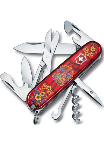 Ніж Victorinox Climber Zodiac 1.3703.Z3250p – середній кишеньковий ніж 91 мм на 14 функцій, серед яких ножиці та універсальний гачок. Багатофункціональна модель, натхненна спорядженням для альпіністів, з великим потенціалом для активного заміського відпочинку та щоденних потреб у місті. Кількість функцій: 14 Довжина у складеному вигляді: 91 мм Довжина леза: 60 мм Ширина у складеному вигляді: 26 мм Товщина: 18 мм Вага: 82 г Колір: червоний Марка сталі: нержавіюча сталь Тип замку: Slip-joint Матеріал рукояті/накладок: целлідор, ABS пластик