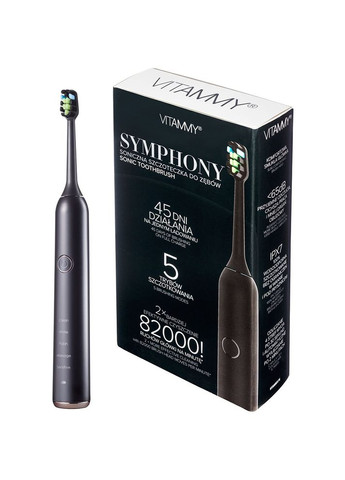 Ергономічна та багатофункціональна акумуляторна зубна щітка зі звуковою технологією очищення від польської компанії Vitammy. Відрізняється великим вибором різних режимів, зручною та надійною конструкцією водонепроникного корпусу, а також чудовою автономністю, завдяки якій її можна брати у подорожі та відрядження. VITAMMY Smils призначена для вимогливих користувачів, які дбають про здоров'я зубів та ротову порожнину. Головним елементом конструкції є довговічний електропривод, який здійснює 80000 рухів за хвилину, створюючи енергійні коливання та пульсації щетинок насадки (2 стандартні овальні насадки в комплекті). Вібруючі щетинки перетворюють зубну пасту та слину на активну піну, яка під дією енергії коливань рухається у ротовій порожнині, проникаючи глибоко у міжзубні проміжки. Зубна щітка Vitammy Smils здатна працювати в п'яти різних режимах: щоденному для повсякденного використання, делікатному для чутливих зубів, полірування, відбілювання (видалення сильного нальоту від кави/чаю/куріння) та режимі глибокого очищення. Текстурований пластиковий корпус щітки не ковзатиме у вологій руці. Підтримується функція 2-хвилинного таймера, кожні кожні 30 сек нагадує про необхідність перейти до наступної зони ротової порожнини. Інтегрований акумулятор забезпечує до півтора місяця автономної роботи. Характеристики: Тип: зубна щітка Живлення: акумулятор Кількість насадок у комплекті: 2 шт Колір: Срібний Вікова група: для дорослих Технологія чищення: звукова пульсуюча Кількість режимів: 5 Режими: щоденний, делікатний, глибоке очищення, відбілювання, полірування Ступінь жорсткості щітки: середня Робота з додатком: ні Час роботи на одному заряді: 45 днів Режим подачі води: - Таймер: так Дисплей: немає Об'єм контейнера для води: - Комплектація: щітка, 2 насадки, зарядний пристрій, інструкція Індикатор зношування насадок: немає Датчик сили натиску: так Бездротове заряджання: так Індикатор стану акумулятора: немає Кількість поступальних рухів: 82 000 коливань за хвилину Кількість обертальних рухів: - Захист корпусу: IPX6 Гарантія, міс: 24