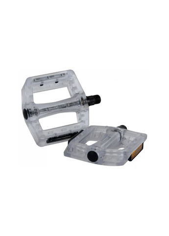 СПЕЦІФІКАЦІЯ • Легкі педалі на платформі з міцного полікарбонату • напівпрозорий дизайн, • Підшипники кулькові. • Високоміцна вісь Cr-Mo 9/16". • Контурні шпильки типу Pin забезпечують належне зчеплення взуття • Розміри 112 x 102,4 x 28,4 мм. • Вага:374 г/пара.