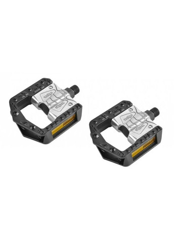 Алюмінієві педалі на полімерних підшипниках підійдуть для катання на МТБ, міських велосипедах по будь якій місцевості на короткі та дальні поїздки. Литий корпус з металевими зубцями для кращого зчеплення з підошвою взуття та запобігання зісковзуванню. Ось педалей вироблена з хромомолібденової сталі 9/16. Додатково оснащені світловідбивачами з обох сторін.
