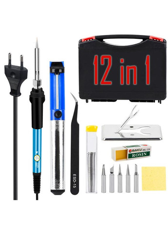 Паяльний набір в кейсі WEP 947-II / паяльник 60Вт, 200-450°C, жала 900M 5 шт, інструменти та розхідники - надійний компактний набір у зручному пластиковому кейсі. Ідеально підійде для побутового використання, а також для зручного транспортування паяльника та потрібних інструментів. Надійний паяльник з регулюванням температури та підставкою, додаткові жала, олово, каніфоль дозволять комфортно виконати всі необхідні завдання з паяння різних елементів обладнання та техніки. Додаткові інструменти - вигнутий пінцет та олововідсмоктувач допоможуть помітно покращити результат роботи. Ремонт мобільної техніки та електроніки складний і тонкий процес, тому що деталі та комплектуючі стають дедалі меншими. Для комфортного, безпечного та надійного ремонту необхідні спеціальні інструменти. Пінцети, викрутки, лопатки, кусачки, затискачі завжди є під рукою на столі у майстра з ремонту мобільної техніки. Наш магазин пропонує широкий вибір інструментів за доступними цінами для ремонту смартфонів, планшетів, ноутбуків відомих у всьому світі виробників BAKU AIDA AMAOE RELIFE MECHANIC. Паяльний набір в кейсі WEP 947-II / паяльник 60Вт, 200-450°C, жала 900M 5 шт, інструменти та розхідники виготовлений з високоякісних матеріалів з ретельним контролем на всіх етапах виробництва. Працюй із задоволенням із професійним обладнанням! Комплектація набору: Паяльник 60W з регулюванням температури 200-450°С Набір тиснув для паяльника Вигнутий пінцет Олово для паяння Вакуумний олововідсмоктувач Підставка під паяльник Каніфоль