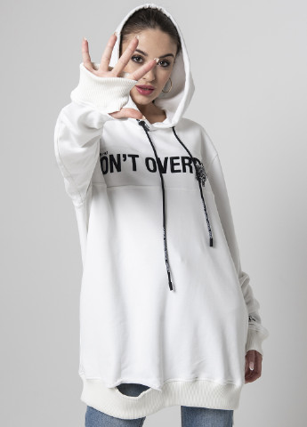 Модель прямого силуету і крою "оверсайз", виріб виконано з щільного, приємного на дотик трикотажного полотна, капюшон зі шнурком-затягуванням, рукава втачні, з гумкою-манжетою по низу. Виріб з вишивкою контрастного кольору. Низ вироби зібраний на трикотажну гумку.