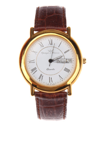 «Yonger & Bresson» - це ексклюзивний французький дизайн, власні механізми та високоякісні матеріали. «Yonger & Bresson» є одним з найуспішніших брендів серед інших марок «Montres Ambre». Дизайнери компанії створюють унікальні колекції, в які входять чоловічі та жіночі наручні годинники, багато хто з них на сталевих браслетах і шкіряних ремінцях. Компанія випускає в основному моделі в класичному стилі, елегантність яких підкреслена незвичайною маркуванням циферблатів. Механізми годин розробив і спроектував майстер компанії Паскаль Бойо. Характеристика: жіночий годинник - HC 02821 - шкіряний ремінець, кварцовий механізм, дисплей з 3 стрілками, вікно дати, тахіметр, сталевий корпус, кругла форма циферблата, мінеральне скло. Діаметр корпусу 38 мм, товщина корпусу 6 мм, довжина ремінця 22 см, ширина 18 мм. Водонепроникність 3 ATM. Годинники поставляються в індивідуальній коробці. Натисніть на коронку і заведіть годинник. Гарантія 12 місяців на механізм.