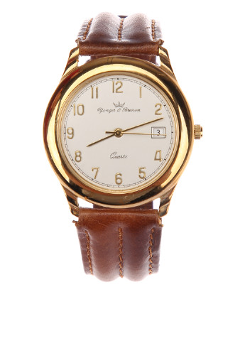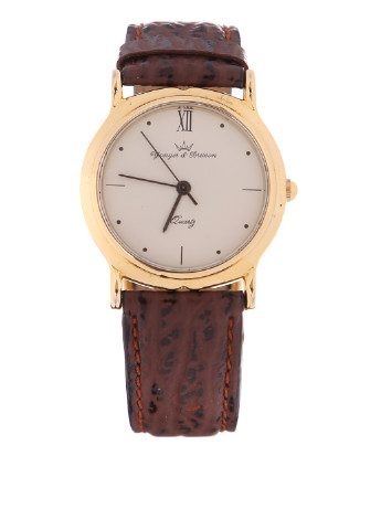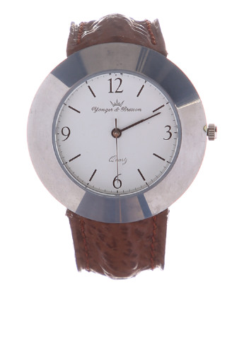 Yonger & Bresson - французька марка, що знаходиться в місті Морта. Yonger & Bresson є одним з найпопулярніших і успішних брендів. Майстри компанії створюють унікальні колекції, в які входять чоловічі та жіночі наручні годинники. При створенні годин використовуються власні механізми. Жіночий годинник - HCР 4050/27 - коричневий шкіряний ремінець, кварцовий механізм, дисплей з 3 стрілками, вікно дати в положенні 3 години, сталевий корпус, кругла форма циферблата, мінеральне скло. Діаметр корпусу 30 мм, товщина корпусу 7 мм, застібка пряжка, довжина ремінця 21 см, ширина 18 мм. Годинники поставляються в індивідуальній коробочці. Натисніть на коронку і заведіть годинник. (На коробці може бути зовнішнє ушкодження (подряпина, вм’ятина), яке не впливає на збереження годин).