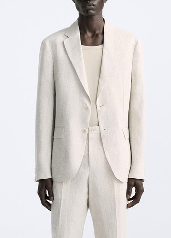 Льняний піджак прямого крою. Рифлені лацкани. Довгі рукави з гудзиками на манжетах. На грудях накладні кишені. Кишені із клапанами на стегнах. Внутрішня кишеня. Розрізи на подолі ззаду. Планка на ґудзиках спереду.