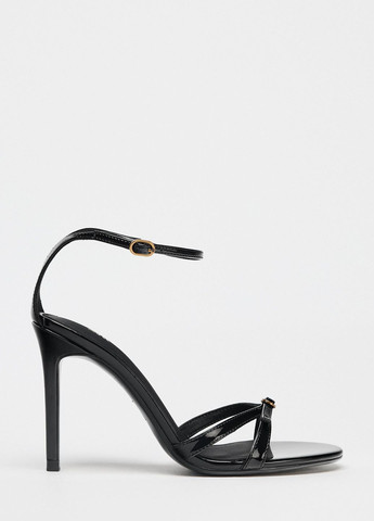 Лаковані босоніжки з ремінцями із пряжками спереду. Ремінець з пряжкою на щиколотці. Каблук-шпилька. Круглий носа. Висота підошви: 10 см.