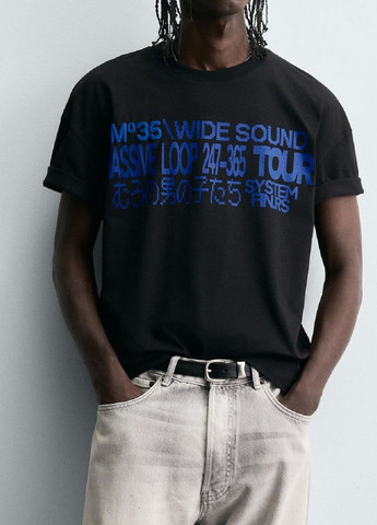 Футболка вільного крою з круглим коміром і короткими рукавами. Контрастні принти з ефектом прання спереду.