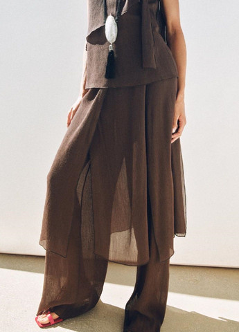Штани з віскозної пряжі. Висока талія та еластичний пояс. Мають деталь з тканини в стилі парео, що пасує до неї.