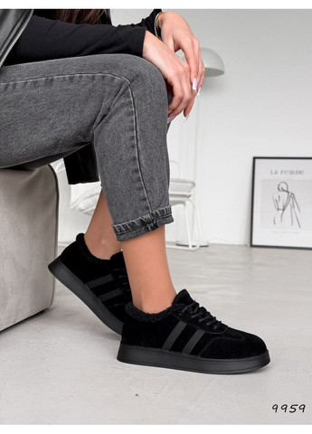 Чорні замшеві кросівки з хутром тедді всередині. Висота підошви 3 см, спереду - 2 см. Виробництво - Китай.