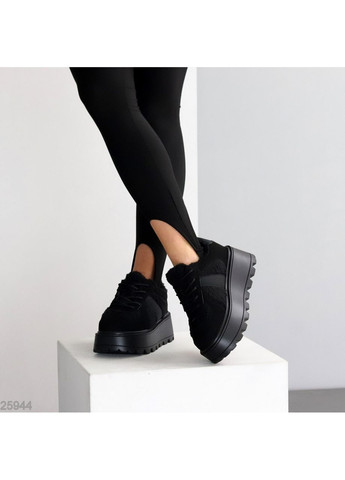 Зимові кросівки 'Tornad' чорного кольору. Верх виготовлений з екозамші, всередині утеплені екохутром. Підошва має висоту 4,5 см в області п'яти та 3,5 см спереду. Підходять для середньої стопи. Маломірять, враховуйте це при виборі розміру.