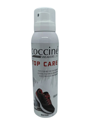 Спрей для спортивного взуття безбарвний COCCINE Sneakers Line TOP CARE 150 мл Спрей для спортивного взуття безбарвний COCCINE Sneakers Line TOP CARE об'ємом 150 мл — це ідеальне рішення для догляду за вашими улюбленими черевиками. Цей універсальний спрей підходить для різних матеріалів, таких як натуральна шкіра, екошкіра, нубук та сітка, забезпечуючи надійний захист і догляд. Завдяки інноваційній формулі, спрей не лише освіжає зовнішній вигляд взуття, але й поглиблює колір, надаючи гладкій шкірі красивий блиск. Він відновлює яскравість відтінку на нубуку та сітці, роблячи вашу взуття як нову. Застосування спрею дуже просте: спочатку очистіть поверхню від пилу та бруду, потім струсніть ємність і рівномірно розпиліть засіб на взуття з відстані приблизно 25 см. Після нанесення залиште взуття висихати, а потім протріть залишки препарату на гладких поверхнях серветкою і відполіруйте для досягнення ідеального результату. Зверніть увагу, що перед повним застосуванням рекомендується протестувати спрей на невеликій ділянці взуття в менш помітному місці. Спрей COCCINE Sneakers Line TOP CARE не блокує потік повітря, що дозволяє взуттю дихати і зберігати комфорт при носінні. Цей продукт є необхідним атрибутом для всіх, хто піклується про стан свого спортивного взуття, забезпечуючи його довговічність і привабливий зовнішній вигляд. Підходить для використання в будь-яку пору року, спрей допоможе вам підтримувати ідеальний вигляд кросівок, незалежно від сезону. Не упустіть можливість подарувати своїй взуттю турботу, яку вона заслуговує, за допомогою спрею COCCINE Sneakers Line TOP CARE.