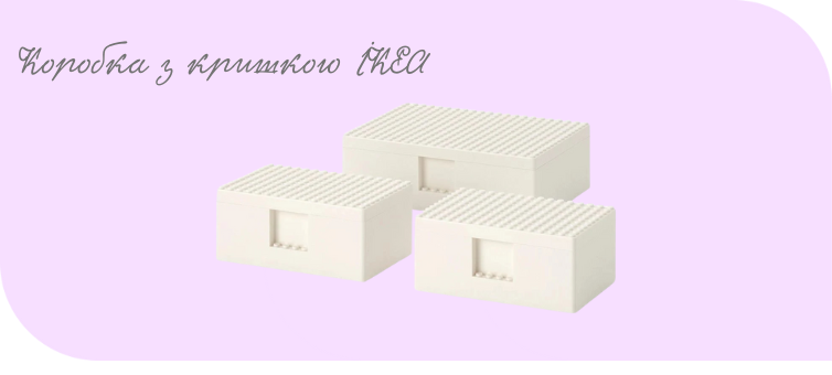 Lego та IKEA створили серію BYGGLEK – систему зберігання з інтегрованими базовими пластинами на кришках коробок. Це дозволяє зберігати деталі та одночасно грати на самій коробці. BYGGLEK пропонує різні розміри, що ідеально підходить для створення міні-конструкцій прямо на кришках або як стильне рішення для організації простору в дитячій кімнаті.