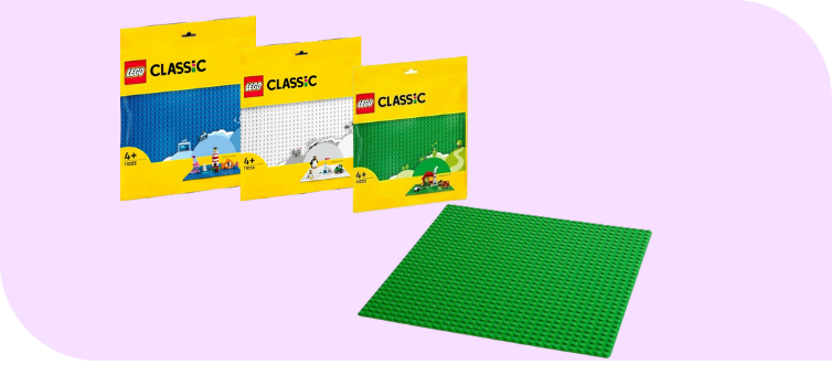 Базові пластини дозволяють легко організувати й показати свої конструкції. Їх можна прикріпити на стіну чи стіл, створюючи виставкові поверхні. Також є різні кольори та розміри, щоб підлаштувати під проєкти.