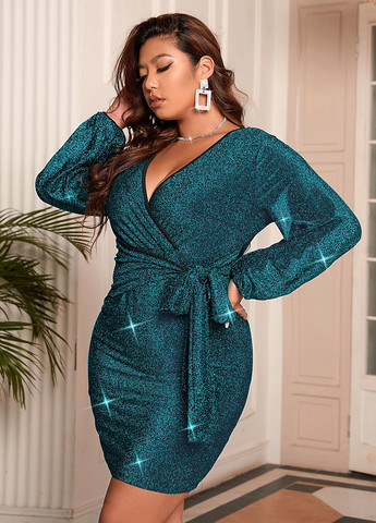 Матеріал Поліестер / Колір Бірюзовий / Фасон На запах / Довжина виробу Міні / Стиль Вечірній, Святковий