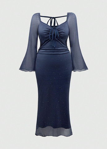 Матеріал Поліестер / Колір Темно-синій / Довжина виробу Міді та нижче коліна / Стиль Святковий, Вечірній