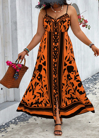 Матеріал Поліестер / Колір Помаранчевий / Фасон А-силует, З відкритою спиною / Довжина виробу Максі / Стиль Святковий, Кежуал