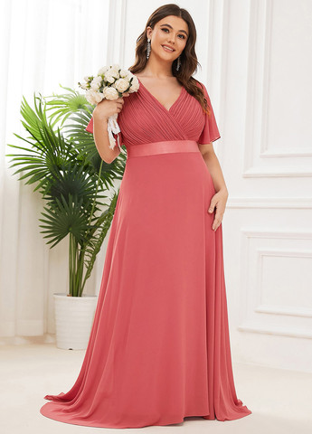 Сукня нареченої EVER-PRETTY Plus Flutter Sleeve Pleated Chiffon Bridesmaid Dress пропонує привабливий силует. Вона має стандартний крій з V-подібним вирізом та оздобленням «високий-низький». Сукня виготовлена з плісованої шифонової тканини з невеликим розтягуванням. Рукави-волани завершують дизайн, застібається на блискавку.
