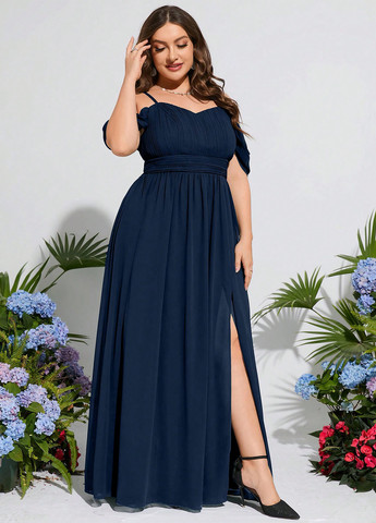 Матеріал Поліестер / Колір Темно-синій / Фасон З відкритими плечима, А-силует / Довжина виробу Максі / Стиль Святковий, Вечірній