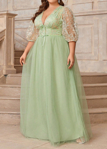 Матеріал Поліестер / Колір Салатовий / Фасон Ампір / Довжина виробу Максі / Стиль Святковий