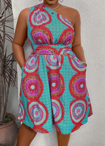 Ця сукня SHEIN VCAY має суцільний принт та асиметричний виріз. Вона має вільний крій і включає вирізи та складчасті деталі. Тканина не тягнеться. Сукня має природну лінію талії.