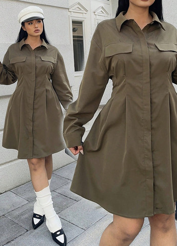 Матеріал Поліестер / Колір Оливковий / Фасон А-силует, Сукня-сорочка / Довжина виробу Міні / Стиль Святковий, Діловий, Кежуал