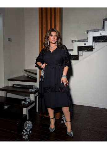 Матеріал Софт, Гіпюр / Колір Чорний / Фасон На запах / Довжина виробу Міді та нижче коліна / Стиль Святковий, Вечірній