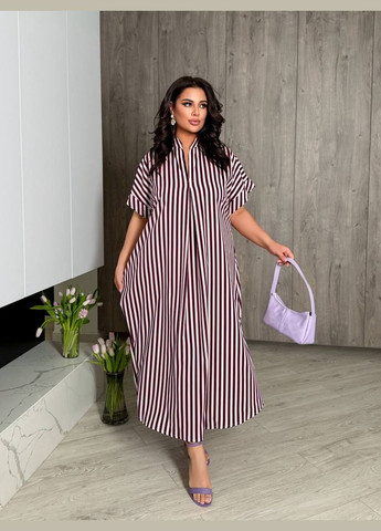 ❗️❗️❗️ПЕРЕД ЗАМОВЛЕННЯМ ОЗНАЙОМТЕСЬ З ЗАМІРАМИ НИЖЧЕ❗️❗️❗️ 50/52 Напів ОГ. - 63 Напів ОБ - 77 Довжина - 133 54/56 Напів ОГ - 65 Напів ОБ - 81 Довжина - 134 58-60 Напів ОГ - 67 Напів ОБ - 83 Довжина - 135 Стильна міді-сукня вільного крою у принт "полоска". Ця сукня — ідеальний варіант для спекотних днів. Завдяки легкому крою та дихаючому матеріалу, вона дарує абсолютний комфорт і легкість у кожному русі. Підійде як для щоденних прогулянок, так і для міського стилю. Матеріал: софт-принт у смужку — приємний до тіла, не парить, чудово тримає форму й майже не потребує прасування. Фасон: вільний крій — не обтягує фігуру, приховує недоліки, дарує відчуття свободи. Комір-стійка: додає стриманої елегантності та гармонійно врівноважує легкість сукні. Довжина міді — пасує до будь-якого типу взуття: від босоніжок до кросівок. Батальні розміри — створена для комфорту, стилю та впевненості. Ця сукня зробить ваш образ невагомим, свіжим і жіночним, а вертикальні смужки візуально витягують силует.