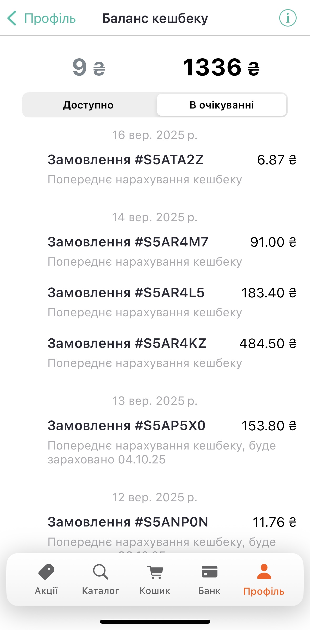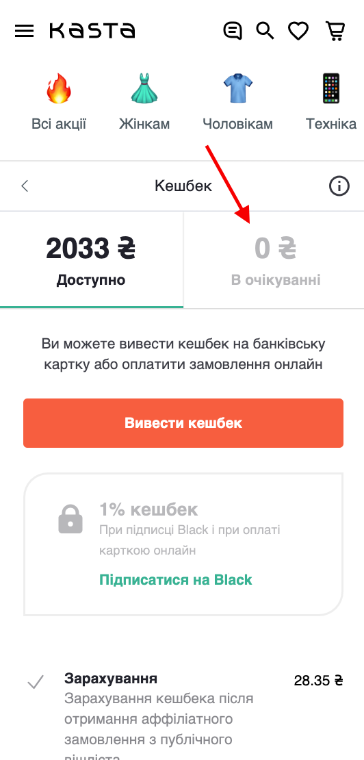 - Де на сайті шукати інформацію про те, скільки кешбеку тобі нарахували за товари?