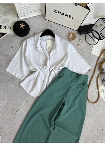 ❗️❗️❗️ПЕРЕД ЗАМОВЛЕННЯМ ОЗНАЙОМТЕСЬ З ЗАМІРАМИ НИЖЧЕ❗️❗️❗️ 42-44 Сорочка: ОГ - 106 см Довжина - 61 см Штани: ОТ - до 75 см ОС - до 96 см Довжина - 109 см Довжина по внутрішньому шву - 80 см 46-48 Сорочка: Ог - 112 см Довжина - 61 см Штани: ОТ - до 85 см ОС - до 104 см Довжина - 110 см Довжина по внутрішньому шву - 80 см 50-52 Сорочка: Ог - 120 см Довжина - 62 см Штани: ОТ - до 95 см ОС - до 112 см Довжина - 110 см Довжина по внутрішньому шву - 81 см Жіночий костюм із натурального льону — сорочка + штани Цей лаконічний костюм — справжнє втілення елегантної простоти й натурального комфорту. Складається з білої сорочки вільного крою на ґудзиках із відкладним коміром та широких штанів глибокого смарагдового кольору з високою посадкою. Такий дует — універсальний варіант на щодень, офіс, прогулянку чи подорож.
