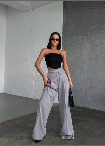 Колір Сірий / Матеріал Костюмна / Фасон Палаццо / Висота посадки Висока талія / Візерунок Однотонний