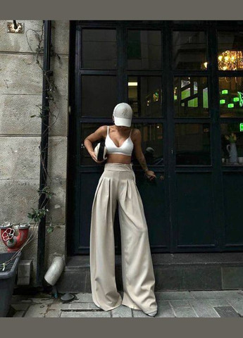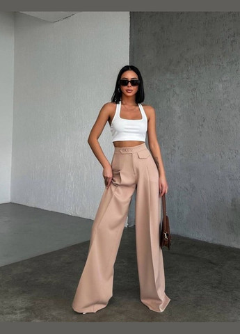 Колір Бежевий / Матеріал Костюмна / Фасон Палаццо / Висота посадки Висока талія / Візерунок Однотонний