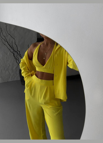 Колір Жовтий / Фасон З сорочкою, Трійка, Брючний / Стиль Святковий, Коктейльний, Пляжний, Повсякденний, Відвертий, Денім, Вечірній