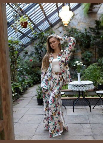 Колір Бежевий / Фасон Брючний / Стиль Повсякденний, Святковий, Вечірній / Візерунок Квітковий / Матеріал Бавовна, Льон