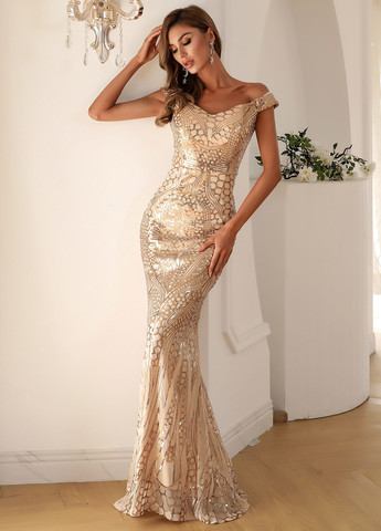 Матеріал Поліестер / Колір Золотистий / Фасон Годе, З відкритою спиною, А-силует / Довжина виробу Максі / Стиль Святковий, Вечірній