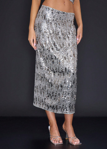 Колір Срібний / Фасон Олівець / Висота посадки Низька талія / Довжина виробу Максі / Матеріал Поліестер