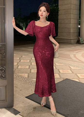 Матеріал Поліестер / Колір Вишневий / Фасон Годе / Довжина виробу Міді та нижче коліна / Стиль Святковий, Вечірній