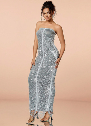 Матеріал Поліестер / Колір Срібний / Фасон З відкритою спиною / Довжина виробу Максі / Стиль Святковий, Вечірній
