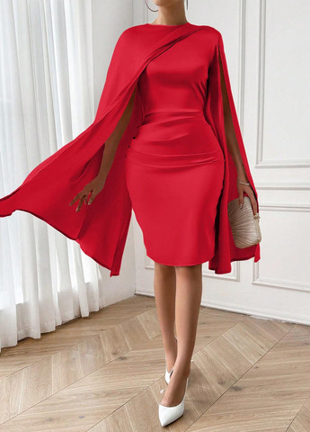 Матеріал Поліестер, Атлас / Колір Червоний / Фасон Сукня-кейп / Довжина виробу Міні / Стиль Святковий, Вечірній