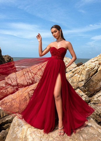 Матеріал Поліестер / Колір Темно-червоний / Фасон З пишною спідницею, З відкритими плечима, З відкритою спиною / Довжина виробу Максі / Стиль Святковий, Вечірній