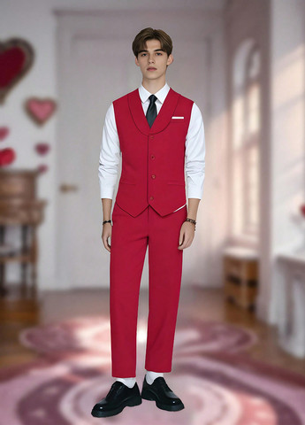 Цей костюм складається з червоного жилета та строгих штанів у тон. Виготовлений із нееластичної тканини.