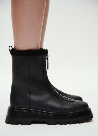 Чоботи з халявою до щиколоток, застібкою-блискавкою спереду та петлею ззаду. Товста підошва з візерунком знизу та м'яка, пухнаста підкладка й устілка.