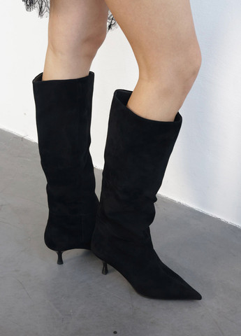 Колір Чорний / Сезонність Демісезон / Склад верха Натуральна замша / Висота підбора На середніх підборах / Застібка Без застібки