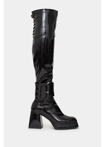 Жіночі демісезонні ботфорти Via Del Garda виготовлені з натурального лаку. Внутрішній матеріал – натуральна шкіра. Висота каблука – 8,5 см. Висота халяви - 49 см. Матеріал верху: натуральна лакова шкіра + стрейч. Модель на тонкі ноги.
