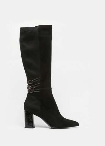 Жіночі чоботи Left and Right чорного кольору виготовлені з натуральної замші, внутрішній матеріал - натуральна шкіра. Матеріал верху: натуральна замша та замшевий стретч.