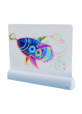 Це не просто іграшка - це інтерактивна 3D розвиваюча дошка для малювання, спроектована для ваших маленьких чарівників і творців. Надихаюча і освітлююча кожну творчу ідею яскравим світлом, вона стане чарівним подарунком, який пробудить вашу дитину до нескінченних можливостей. Створюйте дивовижні шедеври за допомогою спеціальних шаблонів, які подарують дитині впевнений старт. Просто обведіть контури маркерами, увімкніть магічне освітлення і малюнок оживе на ваших очах! Ідеально підходить для дітей різного віку, ця дошка розвиває інтелект, удосконалює дрібну моторику і розкриває потоки нескінченної уяви. Повне диво відкрите перед вами! Планшет для малювання, що світиться, легко брати з собою - він портативний і простий у використанні. Незалежно від вашого місцезнаходження, вдома або в дорозі, діти будуть надихнуті до творчості та розваги протягом усього часу. Сяюча дошка також стимулює творчий потенціал, дозволяючи вашим дітям легко копіювати зображення із шаблонів та перетворювати звичайні малюнки на справжні витвори мистецтва. Різнокольорове освітлення додає чаклунства кожної лінії, а ваші малюнки заграють новими фарбами та відтінками, зображуючи цікаві та яскраві моменти. Але не лише діти будуть захоплені цією магією! Магічна флуоресцентна дошка TENWIN стане ідеальним аксесуаром у торгових закладах, барах чи ресторанах, служачи як оригінальний менюхолдер, цінник чи яскравий рекламний стенд. І це ще не все! Магічна флуоресцентна дошка для малювання з 3D ефектом - це чудовий нічник для дитячої, який перетворює сновидіння на справжнє диво! Так що не чекайте! Відкрийте світ творчості та магії з флуоресцентною дошкою для малювання - інноваційною іграшкою, яка привнесе чари та радість у життя ваших дітей, зробивши кожен момент незабутнім та чарівним. Комплектація: Дошка для малювання Підставка для дошки з підсвічуванням Шаблони для малювання Фломастери (6 кольорів) Серветка, що чистить Інструкція користувача Характеристики: Тип набір для творчості, дошка для малювання, що світиться Стать унісекс Вік Від 3 років Живлення Три елементи живлення тип: АА Колір підставки білий, салатовий, рожевий Матеріал виробу ABS пластик, акрил Упаковка картонна коробка Вага гр. 730 Розміри упаковки 33*29*5 см. Розмір робочої зони 30*20 см Країна виробник Китай Бренд TENWIN
